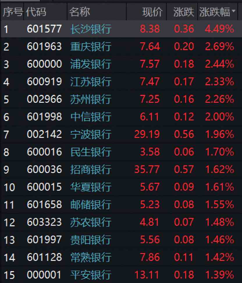 4月18日上午,大金融提振指數(shù),銀行、保險(xiǎn)、券商等板塊均有不俗表現(xiàn)。截至上午收盤,除杭州銀行(600926)平盤外,42只銀行股全部飄紅,長(zhǎng)沙銀行(601577)漲4.49%,重慶銀行(601963)、浦發(fā)銀行、江蘇銀行(600919)漲幅居前。