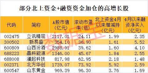 部分業(yè)績高增長股在收獲融資資金加倉同時,同樣獲得北上資金青睞。