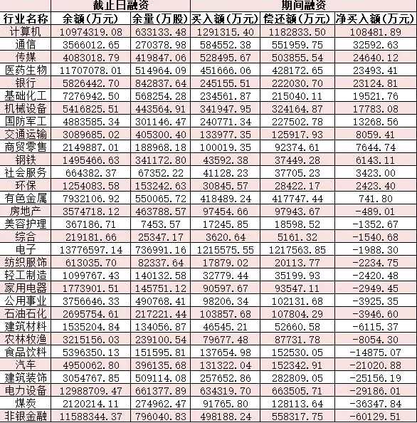 表:4月18日申萬一級行業(yè)兩融交易情況: