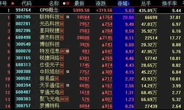 熱點(diǎn)方面,截至4月19日上午收盤,CPO概念、液冷概念等板塊漲幅居前。另外,定制家居、光伏膠膜等板塊跌幅居前。具體看,CPO概念板塊漲幅居首達(dá)5.63%。其中,聯(lián)特科技(301205)20cm漲停。