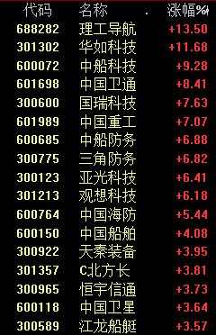 今天上午,國防軍工概念反彈,理工導(dǎo)航漲超13%,華如科技(301302)漲超11%。