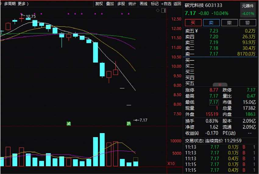 新華聯(lián)(000620)和碳元科技(603133)上午繼續(xù)一字跌停,這兩股已經(jīng)連續(xù)3日一字跌停,此前公告面臨退市風(fēng)險(xiǎn)警示戴帽。