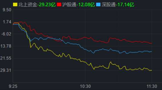 從資金面來看,4月27日上午,北上資金凈流出29.23億元,其中,滬股通凈流出12.08億元,深股通凈流出17.14億元。