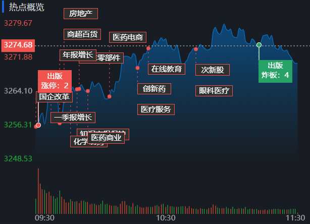 行業(yè)方面,截至4月27日11:30,86個(gè)行業(yè)板塊中42個(gè)上漲,占比48.84%,其中,保險(xiǎn)行業(yè)漲幅居前,達(dá)4.61%,此外,包括中藥、醫(yī)藥制造、船舶制造和化學(xué)制藥等在內(nèi)的4個(gè)行業(yè)漲幅均超2%。下跌方面,教育行業(yè)游戲居首,達(dá)3.75%,此外,光伏設(shè)備、消費(fèi)電子、文化傳媒、互聯(lián)網(wǎng)服務(wù)和通信設(shè)備等5個(gè)行業(yè)跌幅均超1%。