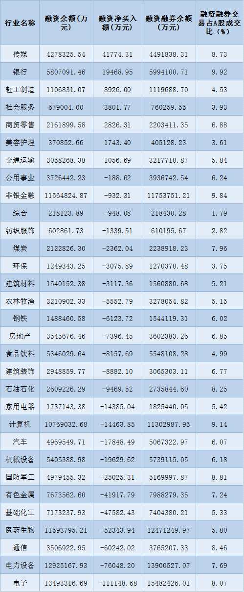 表:4月26日申萬一級行業(yè)兩融交易情況: