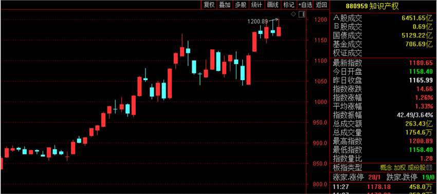 知識產(chǎn)權概念早盤逆勢走強,板塊指數(shù)一度大漲近3%,創(chuàng)歷史新高,今年以來該指數(shù)沿45度角一路上揚,期間累計大漲逾66%。拓爾思(300229)、思美傳媒(002712)、視覺中國(000681)、中國出版(601949)等漲?;驖q超10%。