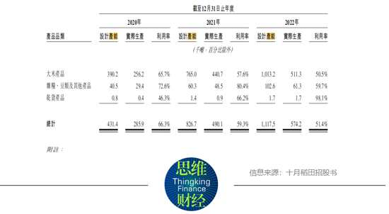 根據(jù)招股書顯示,公司位于五常的生產基地在2015年投產,提供五常大米等核心產品。原本公司的產能尚未完全釋放,而2021年以來十月稻田陸續(xù)新建沈陽新民、松原、通河和敖漢4個生產基地,如此擴建方式導致整體產能利用率再度下滑。主要大米產品產能利用率在2022年都50.5%,整體利用率從66.3%下降到51.4%。但公司在未來計劃的募投項目中仍然要繼續(xù)擴充產能,此等策略是否合理?