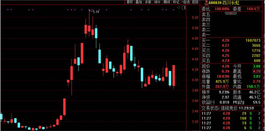 家電板塊盤初一度放量直線拉升漲逾2%,半日成交接近昨日全天成交。四川長虹(600839)強勢漲停,北鼎股份(300824)、華帝股份(002035)、極米科技等漲幅居前。
