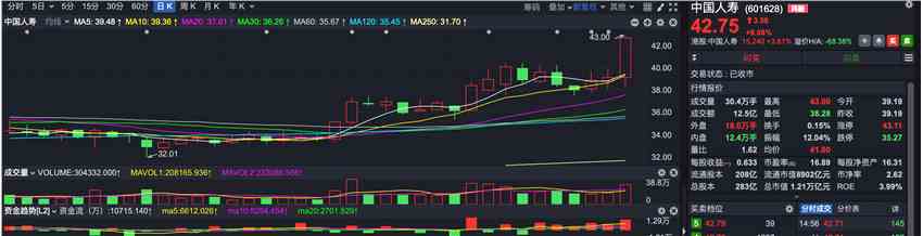 金融領(lǐng)域,表現(xiàn)最強(qiáng)的是中國(guó)人壽(601628),今天大漲9%,另外,中國(guó)平安大漲4.76%,中國(guó)太保(601601)也大漲6%。