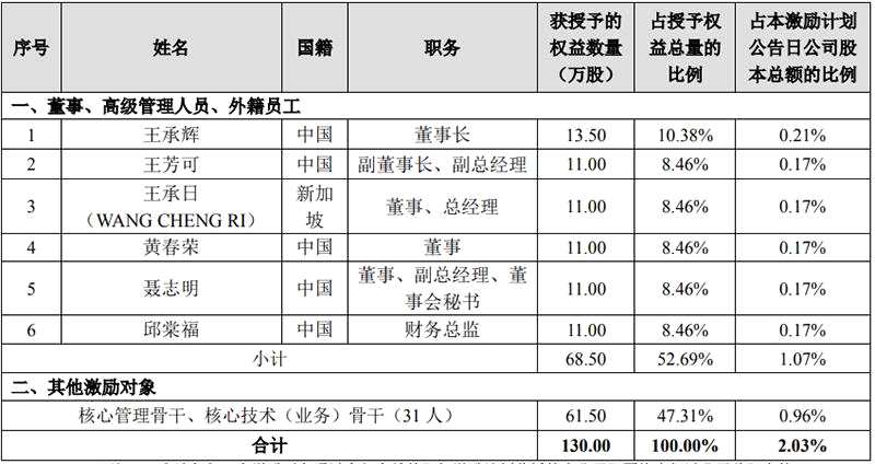 而此次股權(quán)激勵(lì)的對(duì)象也引發(fā)市場(chǎng)爭(zhēng)議。其中,實(shí)控人王承輝擬獲授13.5萬股,占本次授予權(quán)益總量的10.38%。獲授份額次之的5名對(duì)象分別獲授11萬股。其中,王承輝之子王芳可獲授11萬股,王芳可現(xiàn)任公司副董事長(zhǎng)、副總經(jīng)理。公司董事、總經(jīng)理王承日亦獲授11萬股,其與王承輝系兄弟關(guān)系。