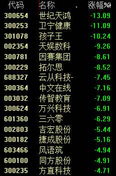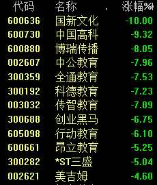 教育板塊中,國新文化(600636)跌停,中國高科(600730)跌超9%。
