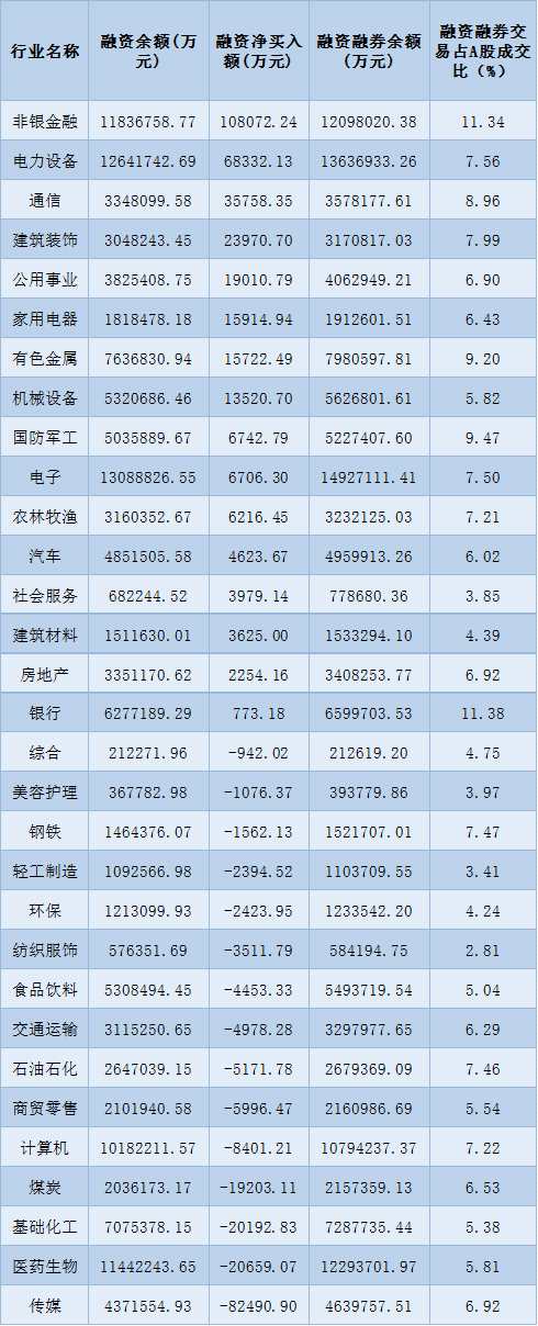 表:5月15日申萬一級行業(yè)兩融交易情況: