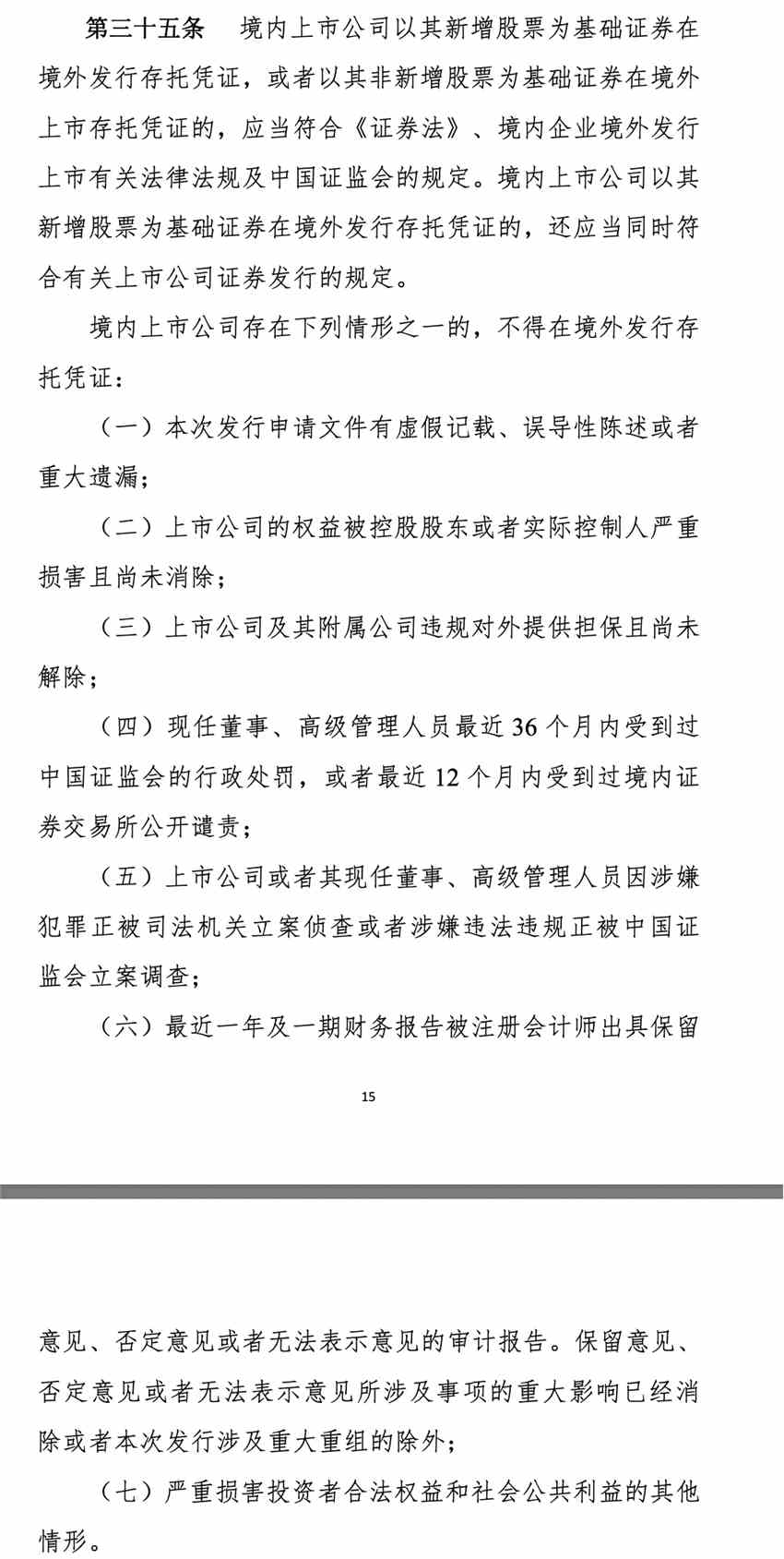 指引明確了禁止情形。境內(nèi)上市公司境外發(fā)行全球存托憑證應(yīng)當(dāng)符合《境內(nèi)企業(yè)境外發(fā)行證券和上市管理試行辦法》第八條及《境內(nèi)外證券交易所互聯(lián)互通存托憑證業(yè)務(wù)監(jiān)管規(guī)定》(以下簡稱《監(jiān)管規(guī)定》)第三十五條的規(guī)定。