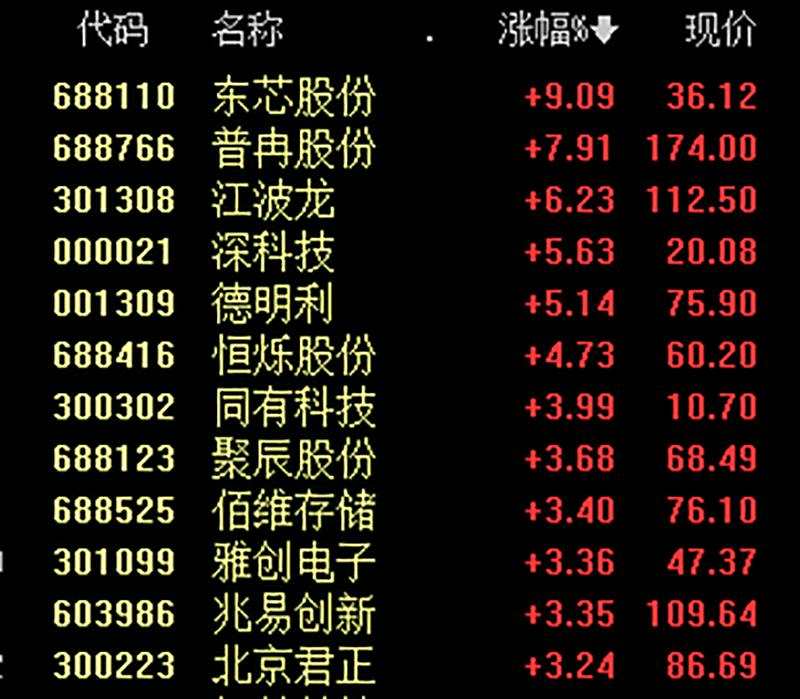 存儲芯片概念早盤漲幅排名 截至上午9時50分