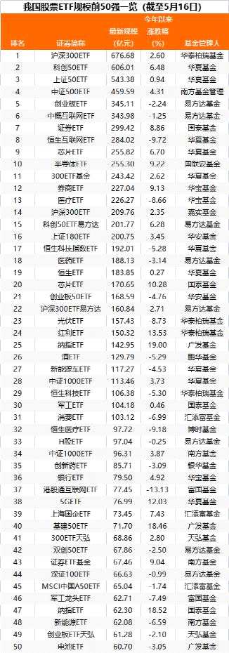 整體來看,在今年股票ETF市場繼續(xù)擴容下,截至5月16日,我國百億股票ETF數(shù)量已經(jīng)達到31只,比去年末新增2只百億基金,新能源車ETF、酒ETF、恒生科技ETF等,都在今年受到資金“越跌越買”,基金規(guī)模出現(xiàn)了明顯增長。