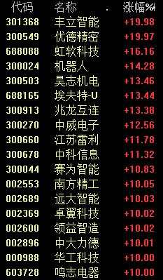 今天上午,機(jī)器人概念掀起漲停潮,豐立智能(301368)、優(yōu)德精密(300549)等個股20%漲停。