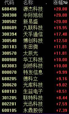 今天上午,光模塊板塊漲瘋了!中際旭創(chuàng)(300308)、新易盛(300502)、源杰科技、九聯(lián)科技集體20%漲停!不少網(wǎng)友高呼:相信光的力量!