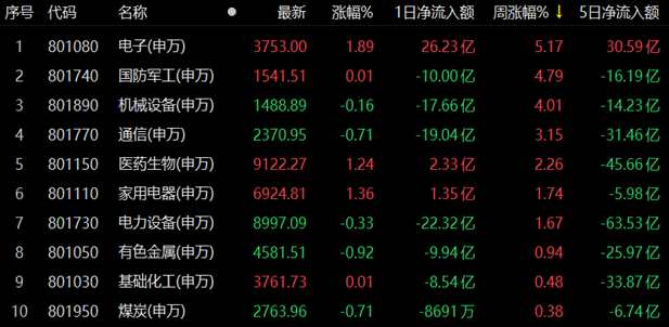 電子行業(yè)漲1.89%