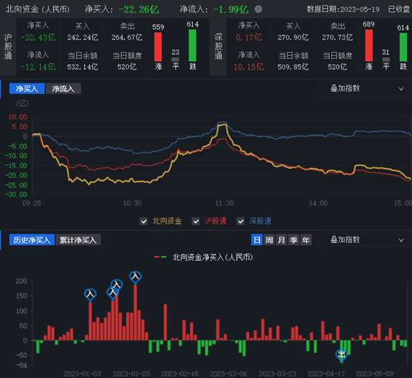 5月19日,A股三大指數(shù)走勢(shì)分化,滬指盤中一度沖過3300點(diǎn)。從周線來看,三大指數(shù)則均出現(xiàn)小幅上漲,創(chuàng)業(yè)板相對(duì)較強(qiáng),周漲幅1.16%,深證成指周漲幅為0.78%,滬指周漲幅為0.34%。北向資金周凈買入5.35億元。業(yè)內(nèi)分析人士表示,當(dāng)下股市還是處于磨底的階段,布局做多性價(jià)比很高。