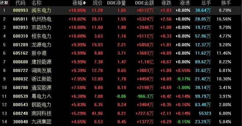 值得關(guān)注的是,截至5月22日上午收盤,電力板塊漲幅居前,達(dá)3.15%,資金凈流入金額達(dá)114.03億元。其中,閩東電力(000993)、杭州熱點、京能熱力(002893)、桂東電力(600310)、龍源電力(001289)、新中港(605162)等多只概念股集體漲停。
