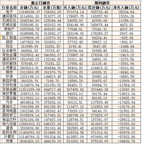 表:5月19日申萬一級行業(yè)兩融交易情況