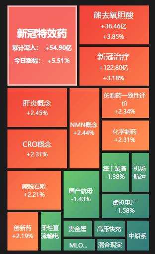 具體看,截至5月23日上午收盤,新冠特效藥板塊漲幅居首達(dá)5.51%,資金凈流入達(dá)54.9億元。其中,翰宇藥業(yè)(300199)、森萱醫(yī)藥、拓新藥業(yè)(301089)、新華制藥(000756)、眾生藥業(yè)(002317)等多只醫(yī)藥股漲幅均超10%。