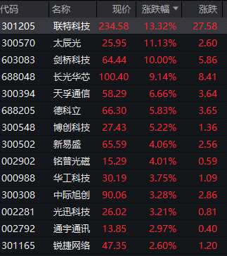 今日,光模塊CPO概念大幅拉升,光庫科技(300620)20CM封板,劍橋科技(603083)漲停,聯(lián)特科技(301205)、太辰光(300570)漲超10%,長光華芯、天孚通信(300394)、德科立等集體回升。