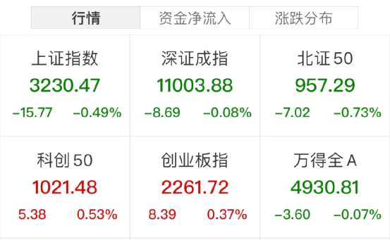 一起來看下上午的市場情況。今天A股弱勢震蕩,三大指數(shù)探底回升,截至上午收盤,滬指跌0.49%,深成指跌0.08%,創(chuàng)業(yè)板指漲0.37%。