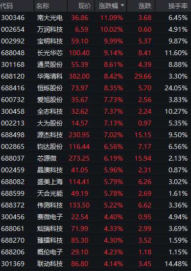 半導(dǎo)體設(shè)備板塊快速拉升,富樂德(301297)漲超15%,耐科裝備、芯源微、長川科技(300604)、拓荊科技等跟漲。