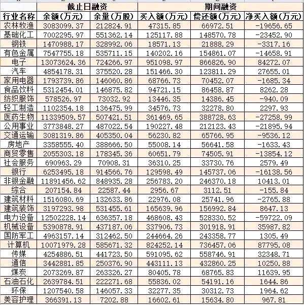 表:5月29日申萬一級行業(yè)兩融交易情況: