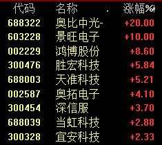 今天上午,AI延續(xù)昨日反彈態(tài)勢(shì),英偉達(dá)概念表現(xiàn)最強(qiáng),奧比中光20%漲停,景旺電子(603228)漲停。