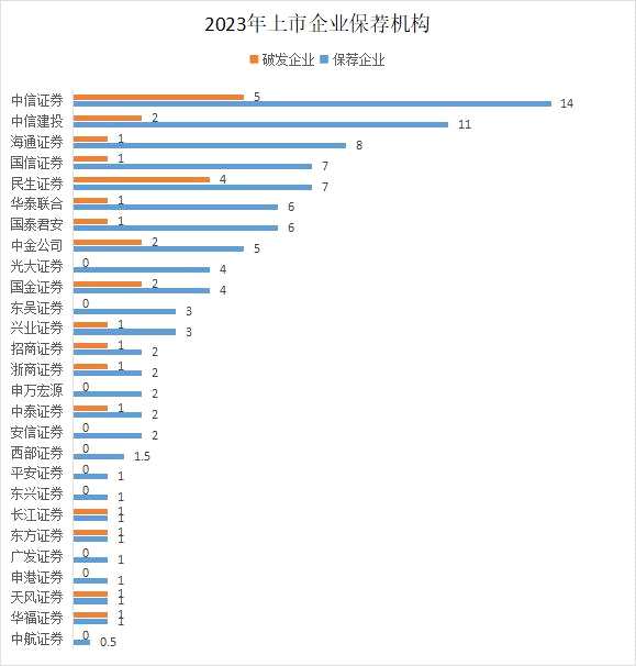 從保薦機(jī)構(gòu)看,截至5月31日收盤(pán),中信證券(600030)共保薦上市14家公司,其中5家處于破發(fā)狀態(tài);中信建投(601066)共保薦上市11家公司,其中2家處于破發(fā)狀態(tài)。