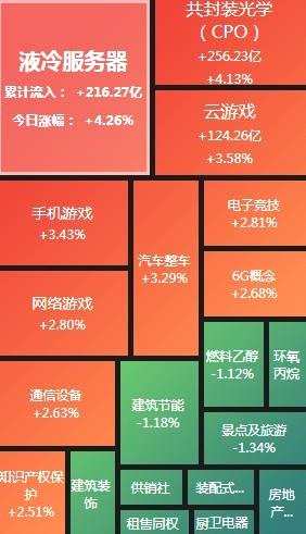 板塊題材上,CPO、液冷服務(wù)器、游戲、傳媒股漲幅居前,旅游、酒店股等收跌。
