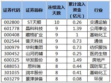 數(shù)據(jù)寶統(tǒng)計(jì),截至6月12日收盤(pán),滬深兩市共有60只個(gè)股連續(xù)5日或5日以上主力資金凈流入。連續(xù)流入天數(shù)最多的是ST天順(002800),已連續(xù)10個(gè)交易日凈流入;連續(xù)凈流入天數(shù)較多的還有晶科科技(601778)、藏格礦業(yè)(000408)、普天科技(002544)、華利集團(tuán)(300979)、山河藥輔(300452),均獲9個(gè)交易日凈流入。