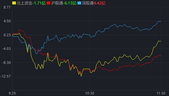 從資金面來(lái)看,6月13日上午,北上資金凈流出1.71億元,其中,滬股通凈賣(mài)出6.13億元,深股通凈買(mǎi)入4.42億元。