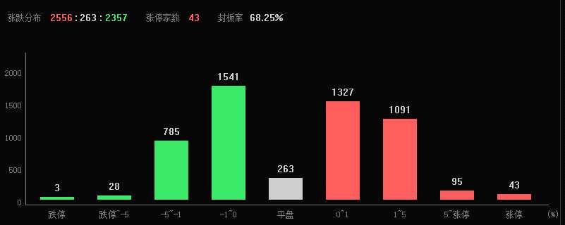 6月13日早盤(pán),A股三大指數(shù)震蕩分化,深市表現(xiàn)相對(duì)強(qiáng)勢(shì)。截至上午11:30,上證指數(shù)跌0.06%,報(bào)3226.89點(diǎn),深證成指和創(chuàng)業(yè)板指漲幅分別為0.39%和0.36%;滬深兩市成交額合計(jì)5712.5億元??傮w來(lái)看,A股市場(chǎng)個(gè)股漲多跌少,有2556只上漲,2357只下跌,漲跌停方面,有43只個(gè)股漲停,跌停股3只。