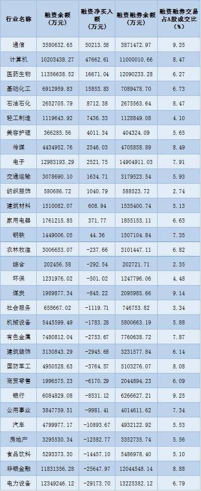 表:6月13日申萬一級行業(yè)兩融交易情況: