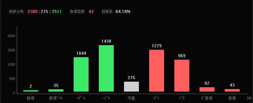 6月14日早盤,A股三大指數(shù)高開震蕩微漲,深市表現(xiàn)相對強(qiáng)勢。截至上午11:30,上證指數(shù)漲0.24%,報(bào)3241.58點(diǎn),深證成指和創(chuàng)業(yè)板指漲幅分別為0.60%和0.25%;滬深兩市成交額合計(jì)6127.6億元。總體來看,a股市場個(gè)股漲少跌多,有2388只上漲,2511只下跌,漲跌停方面,有43只個(gè)股漲停,跌停股2只。