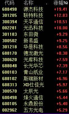 光模塊板塊繼續(xù)狂飆,源杰科技漲超19%,聯(lián)特科技(301205)漲超12%。