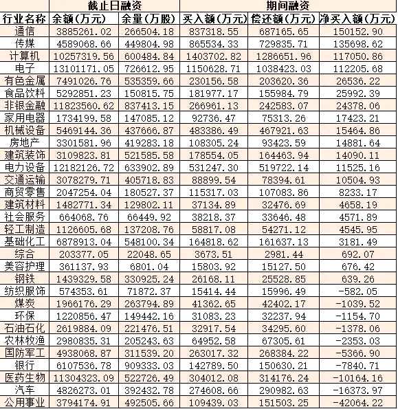 表:6月19日申萬一級行業(yè)兩融交易情況