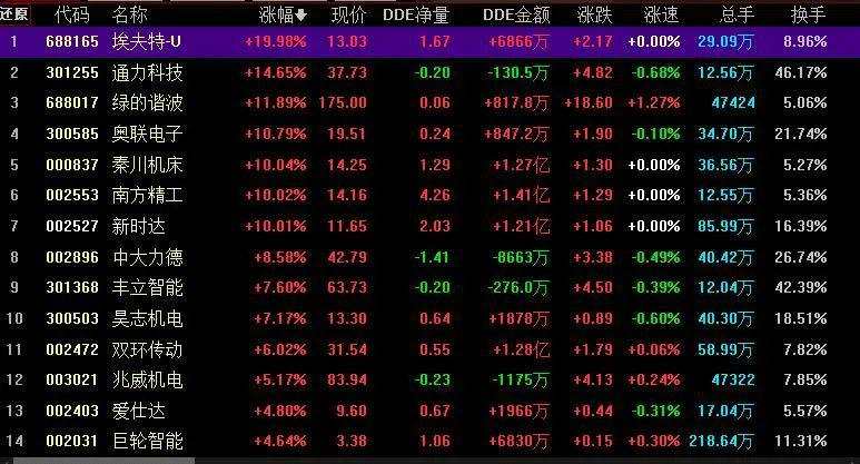 具體看,截至6月20日上午收盤,減速器板塊漲幅居首,達4.30%,資金凈流入達73.30億元。其中,埃夫特-U、通力科技(301255)、綠的諧波、奧聯電子(300585)、秦川機床(000837)、南方精工(002553)、新時達(002527)等概念股漲幅均超10%。