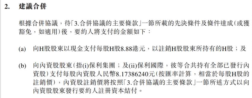 保利文化昨晚公布,與要約人保利集團(tuán)全資附屬公司中藝世紀(jì)文化產(chǎn)業(yè)投資訂立合并協(xié)議,建議由要約人通過吸收合并私有化該集團(tuán)和撤銷上市地位,向H股股東以現(xiàn)金支付每股H股8.88港元,較停牌所報(bào)5港元溢價(jià)約77.6%,較3月底每股資產(chǎn)凈值約13.448港元折讓約34%。