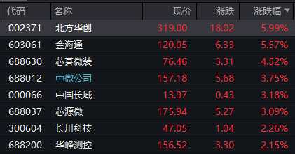 北方華創(chuàng)、偉測科技漲超5%,正帆科技、拓荊科技、中微公司、盛美上海等快速跟漲。