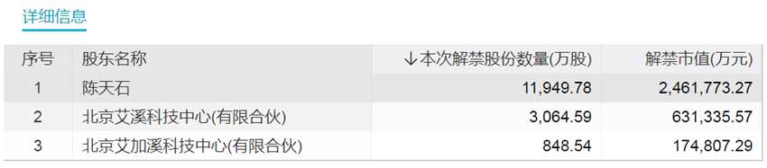 具體來看,在下周面臨解禁的73只股票中,解禁市值最大的寒武紀(jì)-U解禁股東為陳天石、北京艾溪科技中心(有限合伙)、北京艾加溪科技中心(有限合伙)3個(gè)股東,其中陳天石為寒武紀(jì)-U第一大股東、實(shí)際控制人、董事長(zhǎng)。