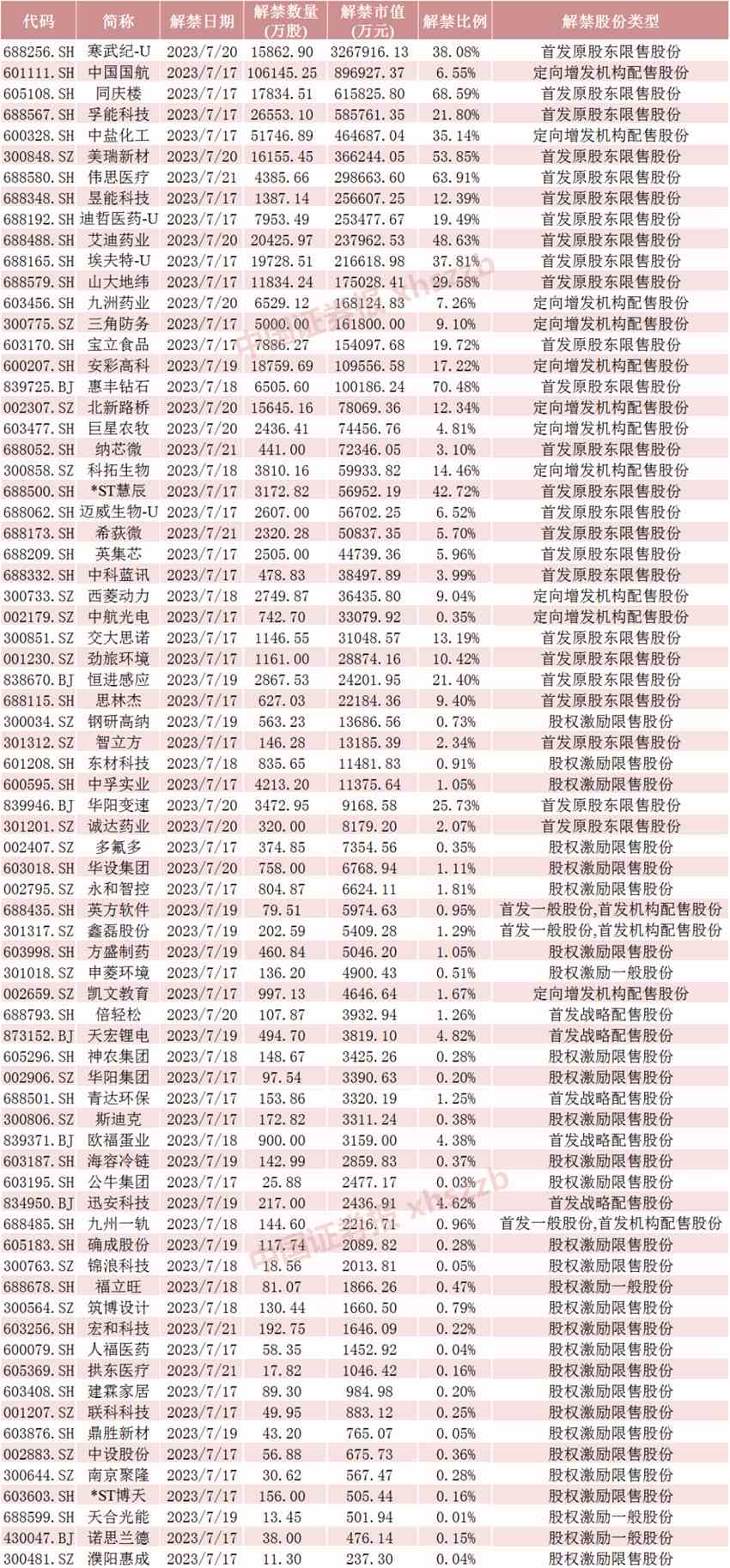下周解禁股全名單