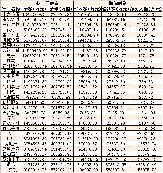 表:7月18日申萬一級行業(yè)兩融交易情況