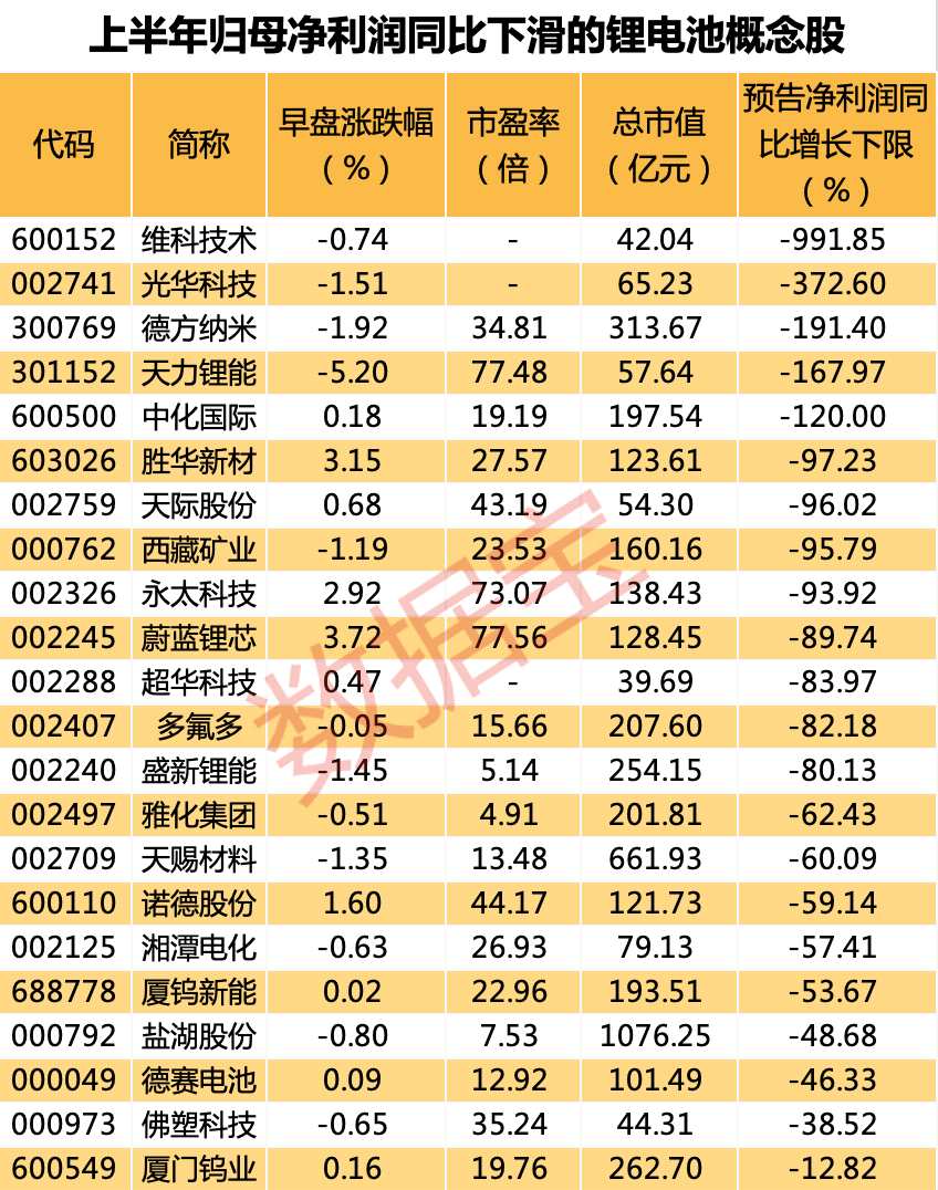 由于碳酸鋰上半年價(jià)格劇烈波動(dòng),鋰電池上市公司上半年盈利普遍下滑。