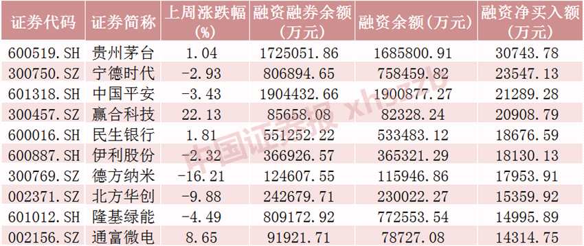 上周融資凈買入金額前十股