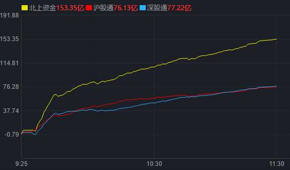 從資金面來(lái)看,7月25日上午,北上資金凈買(mǎi)入金額達(dá)153.35億元,其中,滬股通凈買(mǎi)入76.13億元,深股通凈買(mǎi)入77.22億元。