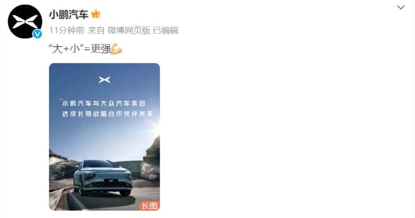 27日上午,小鵬汽車官方微博發(fā)文稱,小鵬汽車與大眾汽車集團(tuán)達(dá)成長期戰(zhàn)略合作伙伴關(guān)系。小鵬汽車與大眾汽車集團(tuán)將發(fā)揮各自優(yōu)勢,共同開發(fā)兩款大眾汽車品牌B級電動(dòng)汽車。雙方的戰(zhàn)略合作還將促進(jìn)雙方在未來電動(dòng)車平臺(tái)、供應(yīng)鏈、下一代智能電動(dòng)車技術(shù)等領(lǐng)域探索長期合作機(jī)會(huì)。